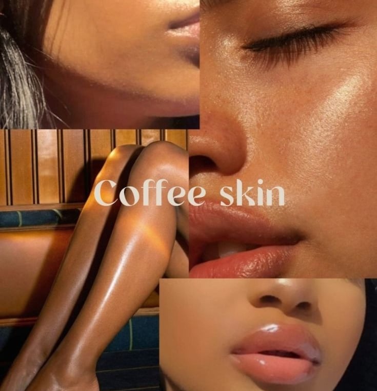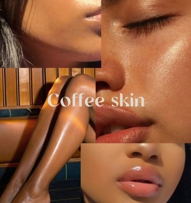 Close-up portrait of a smiling woman with glowing skin, softly lit in warm tones.
